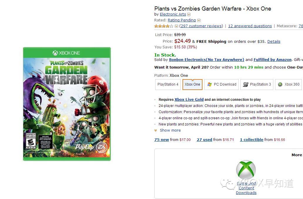 目前美国Amazon又有数款热门游戏促销,力度也都相当不错。其中《看门狗》《罗马之子》普通版均为19.99美元,《日落过载》《花园战争》《丧尸围城3天启版》《罗马之子》传奇版均为24.99美元。