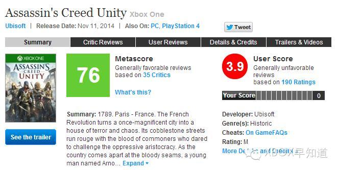 未经允许不得转载:游戏早知道 » 《刺客信条:大革命》Meta评分76分低于预期 目前BUG较多