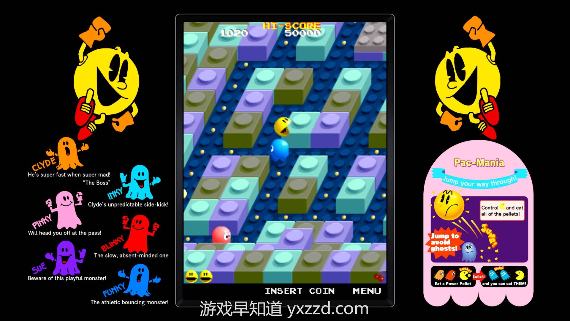 包含「PAC-MAN」、「 PAC-LAND」以及「PAC-IN-TIME」、「PAC-MAN 256」等等,总共14款作品。可尽情游玩经典版、横向卷轴动作版、益智版等多种类型的PAC-MAN游戏!