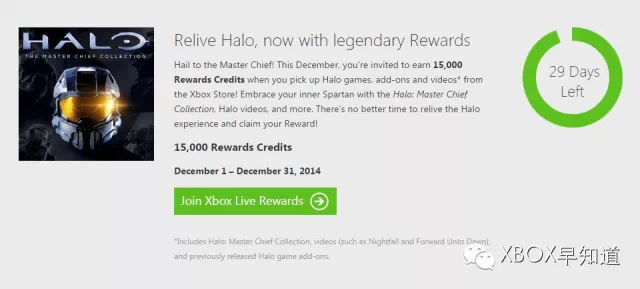 微软正式宣布,在12月购买《Halo光环士官长合集》的新玩家可以获得15000点XBOX Live奖励点数。这次的奖励限时1个月截止到31号结束。15000点XBOX Live点数可以兑换为15美元现金,以方便玩家购买其他游戏和应用,所以这次活动等于《Halo合集》限时75折优惠,力度还算不错。