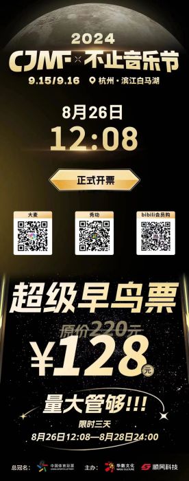 划重点:个人互动与签售,限量发售内场票,数量有限,先到先得!目前内场票已经开售,每个ID限购一张,强实名制认证,不支持退换和转赠,大家购票时一定要确认好行程,填写真实的信息哦~你以为手速够快抢到内场票就万事大吉了吗?NONONO,还需要单独购买一张音乐节的门票。目前音乐节门票也开票啦超级早鸟的价格很香280不要,128了解一下!