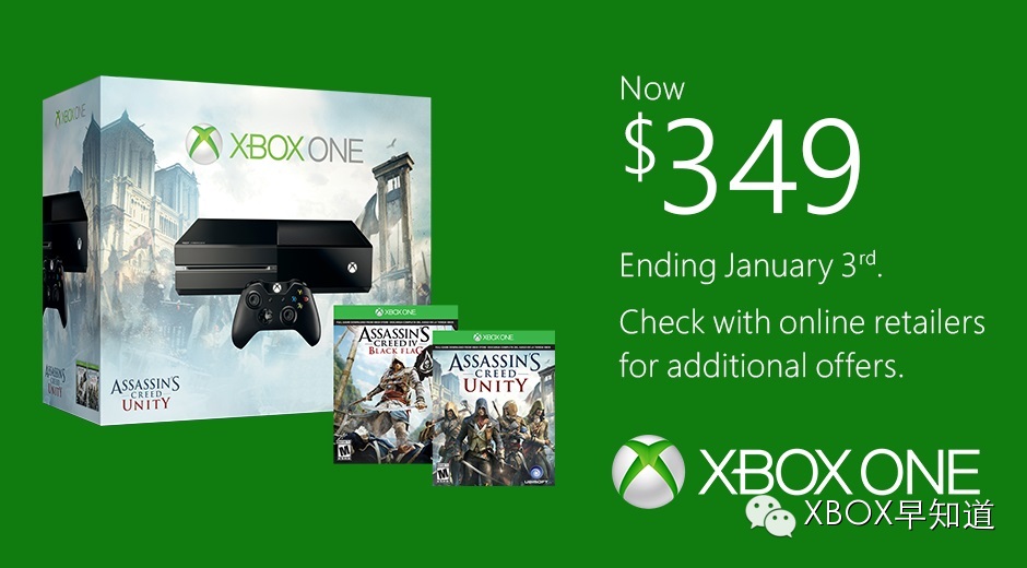 这次微软官方促销自14年11月开始,截止到15年1月3日结束,Xboxone主机将不再执行降价50美元的官方折扣,请近期想入手非国行的玩家们抓紧时间,目前所剩的优惠时间已经不多。