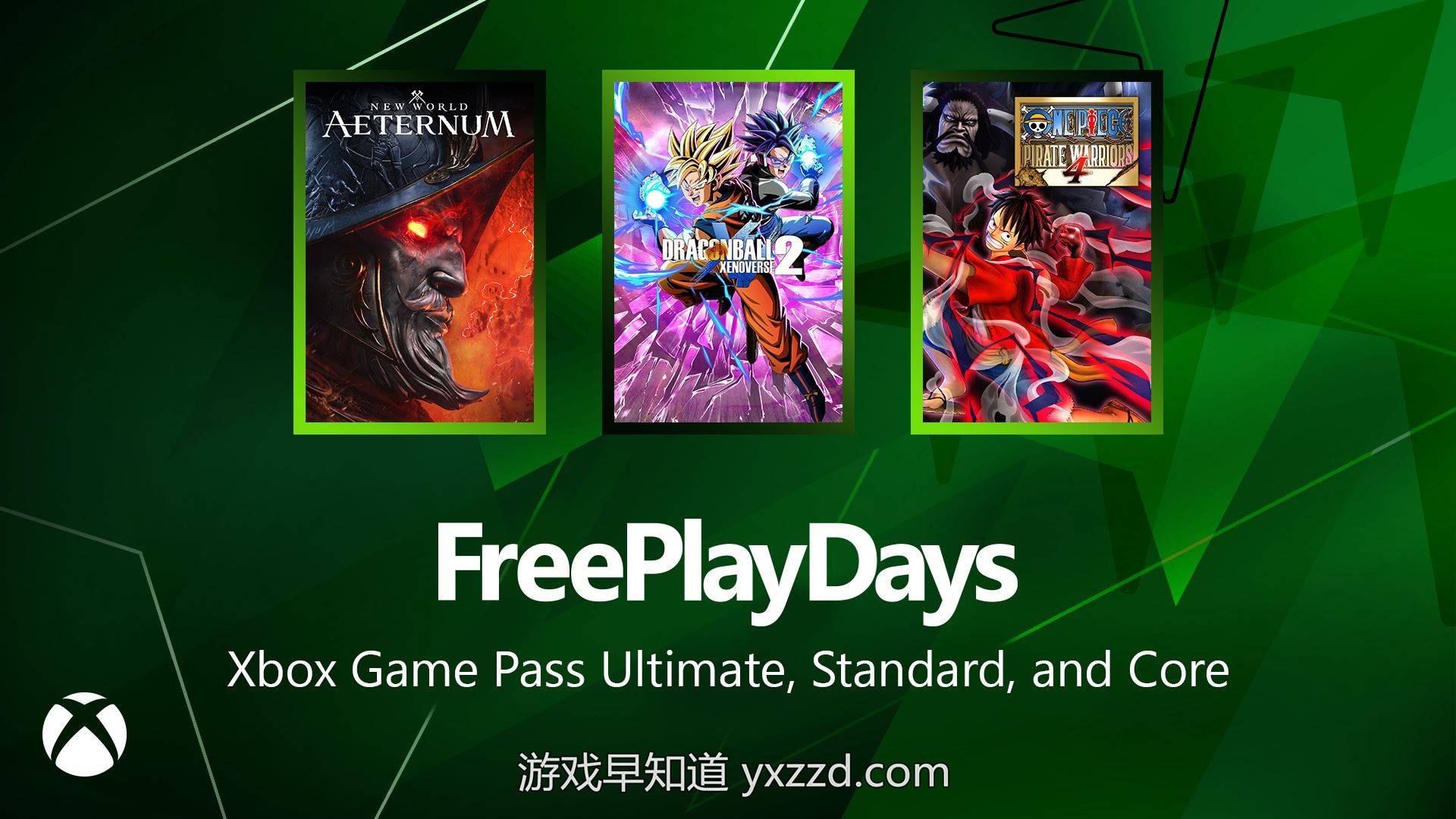 从现在起《新世界:永恒 New World: Aeternum》、《海贼无双4 One Piece: Pirate Warriors 4》、《龙珠:超宇宙2 Dragon Ball Xenoverse 2》正式向Xbox Series X|S、Xbox One平台Xbox游戏通行证核心版 Xbox Game Pass Core 、Xbox游戏通行证标准版 Xbox Game Pass Standard 和Xbox终极游戏通行证 Xbox Game Pass Ultimate 会员开放周末免费游戏日试玩体验。游戏试玩结束时间截止到北京时间 2 月 24 日下周一 16 点。按照惯例大家在试玩期间所解锁的内容均可继承至正式购买之后。《海贼无双4》、《龙珠:超宇宙2》支持官方中文。