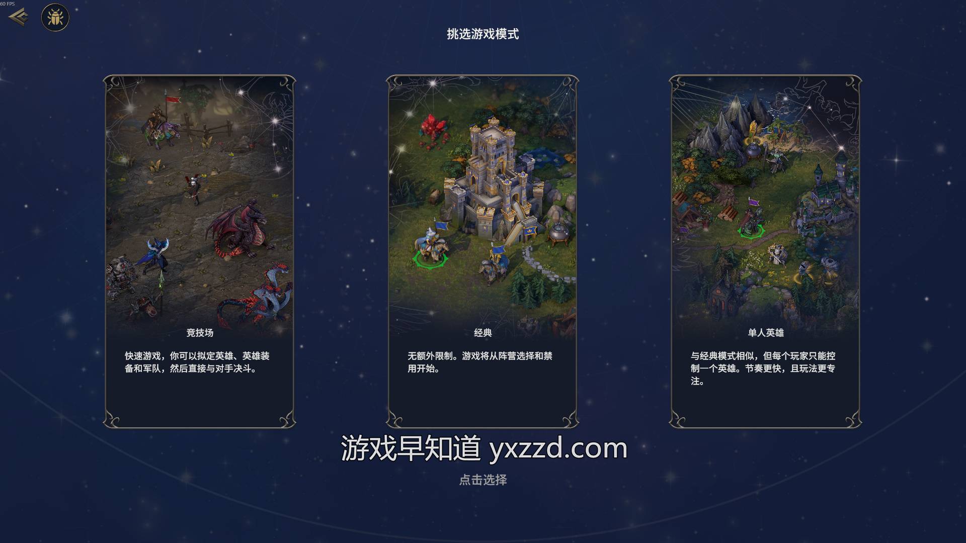 目前试玩版游戏包含新手教学和3张对战地图模版。共开放了4个各具特色的阵营,分别是经典人类的圣殿、不死族吸血鬼的墓园、地下统治者与黑暗精灵的地牢以及全新的阵营克苏鲁系异形的裂渊。每个阵营都有18个拥有不同属性、技能和初始部队的英雄。3种单人游戏模式,分别是经典模式、单人英雄模式、竞技场模式。单人英雄模式限定本次游戏玩家只能使用一个英雄,而经典模式则是可以使用多个英雄。竞技场模式则是纯战斗模式,玩家直接进行英雄和兵种的选择然后开始战斗,没有任何探索环节。无论是经典多英雄模式还是单英雄模式每一张地图都包括6个难度AI等级,分别是简单、普通、困难、不公、极难和末日。无论大家是初级接触《英雄无敌》的新手还是《英雄无敌》几十年的老粉丝都能很好的体验游戏。