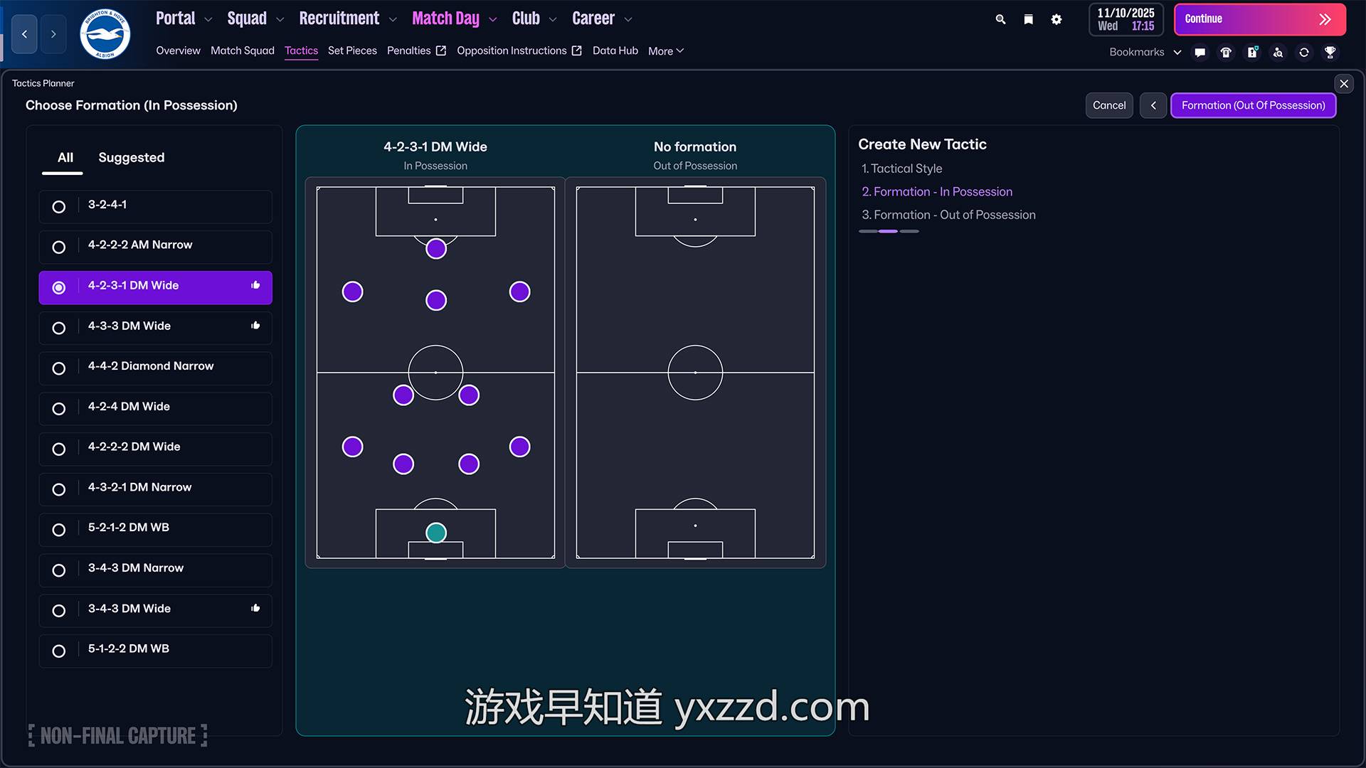 《FM26》将为战术系统带来显著进化。新系统下可为进攻状态与防守状态分别设置阵型,进一步细化球员场上位置与战术角色的管理。球员角色将根据战局变化而改变,同时将新增全新球员职位及经过重新设计的球员职位。