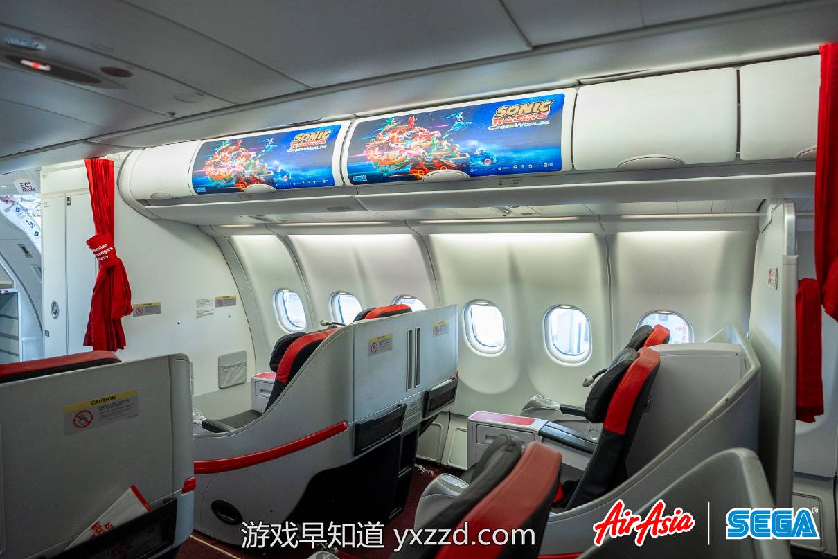 亚航长途(航班代码:D7)的空客A330客机(尾号:9M-XXU)内,机舱已换上《索尼克赛车 交叉世界》主题新装。索尼克与其伙伴们化身舱内装饰,为乘客打造可尽享索尼克世界观的空中旅程。