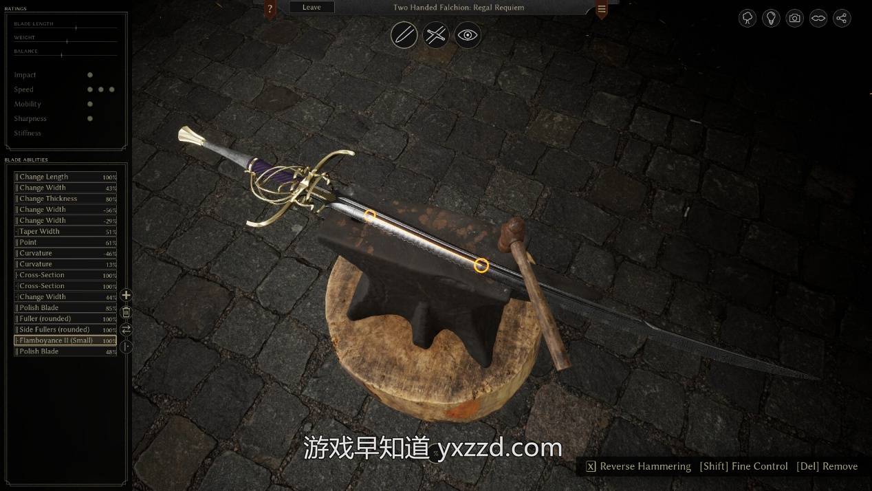 想要不受限制?那就进入 创意模式 —— 这里提供海量的剑刃、部件、工具、材料与雕纹,任由你自由组合。
