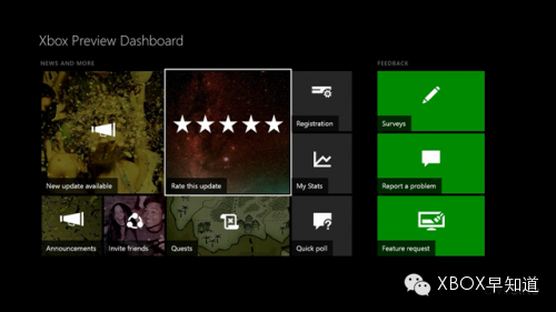 在2014年一年间微软向玩家们进行了9次大规模的系统预览推送,有多达22723的帖子发布到XBOX官方论坛的预览讨论区中,多达6,140,355的预览点数在去年获得,360,951个预览任务被完成,每个月几乎都有系统BUG是由玩家反馈并得以解决的。