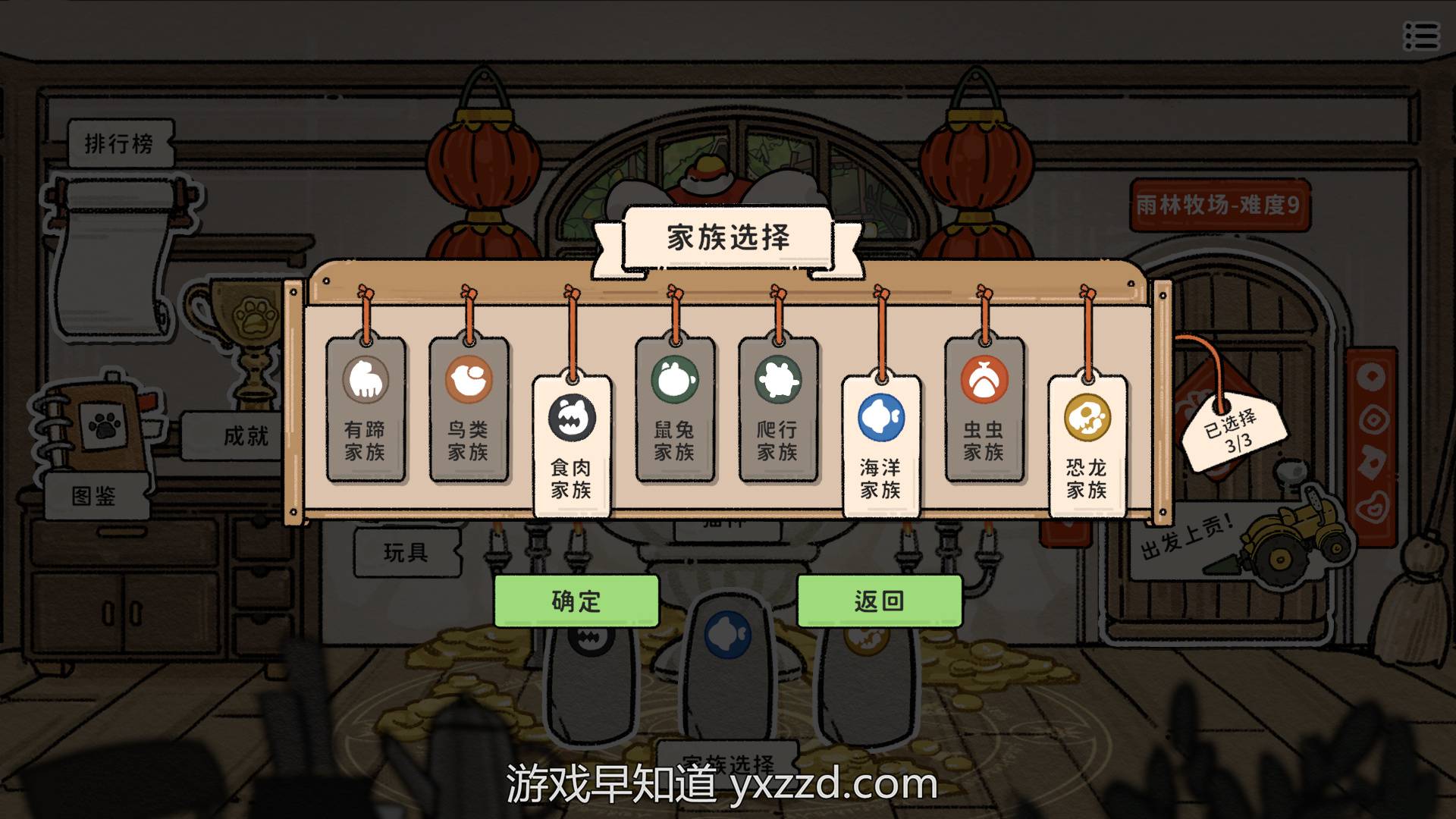在Xbox版《猫神牧场》中,游戏已经包括了DLC“恐龙家族”,所以一共是8套动物卡组,分别是有蹄家族、鸟类家族、食肉家族、鼠兔家族、爬行家族、海洋家族、虫虫家族和恐龙家族。每一套卡组都对应着超过20个动物,也就是卡牌,每个动物都有自己专属的技能或属性。动物等级也分为从白卡到绿卡、蓝卡再到红卡、金卡5个等级。以食肉家族为例,从基础的牧羊犬、狐狸,到鳄鱼、小熊猫,再到剑齿虎、霸王龙。越高级的动物每回合能产生的金币也越多。