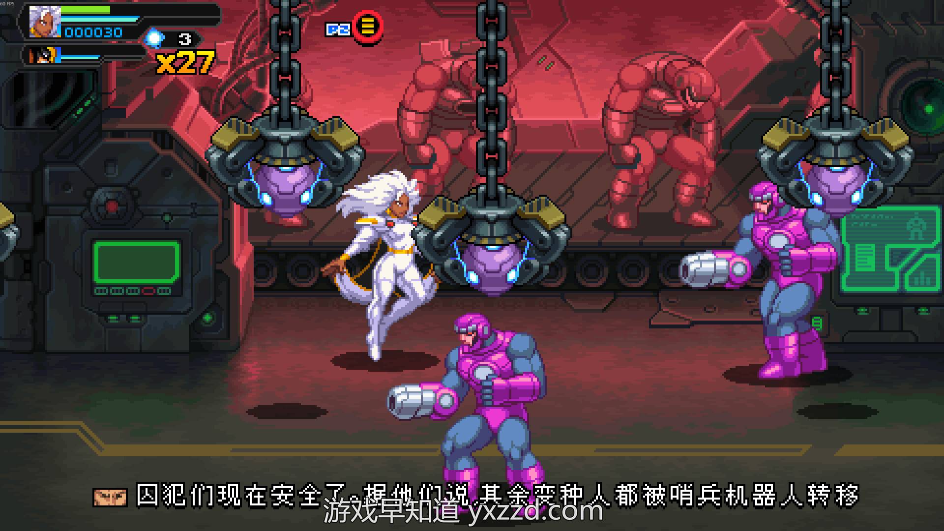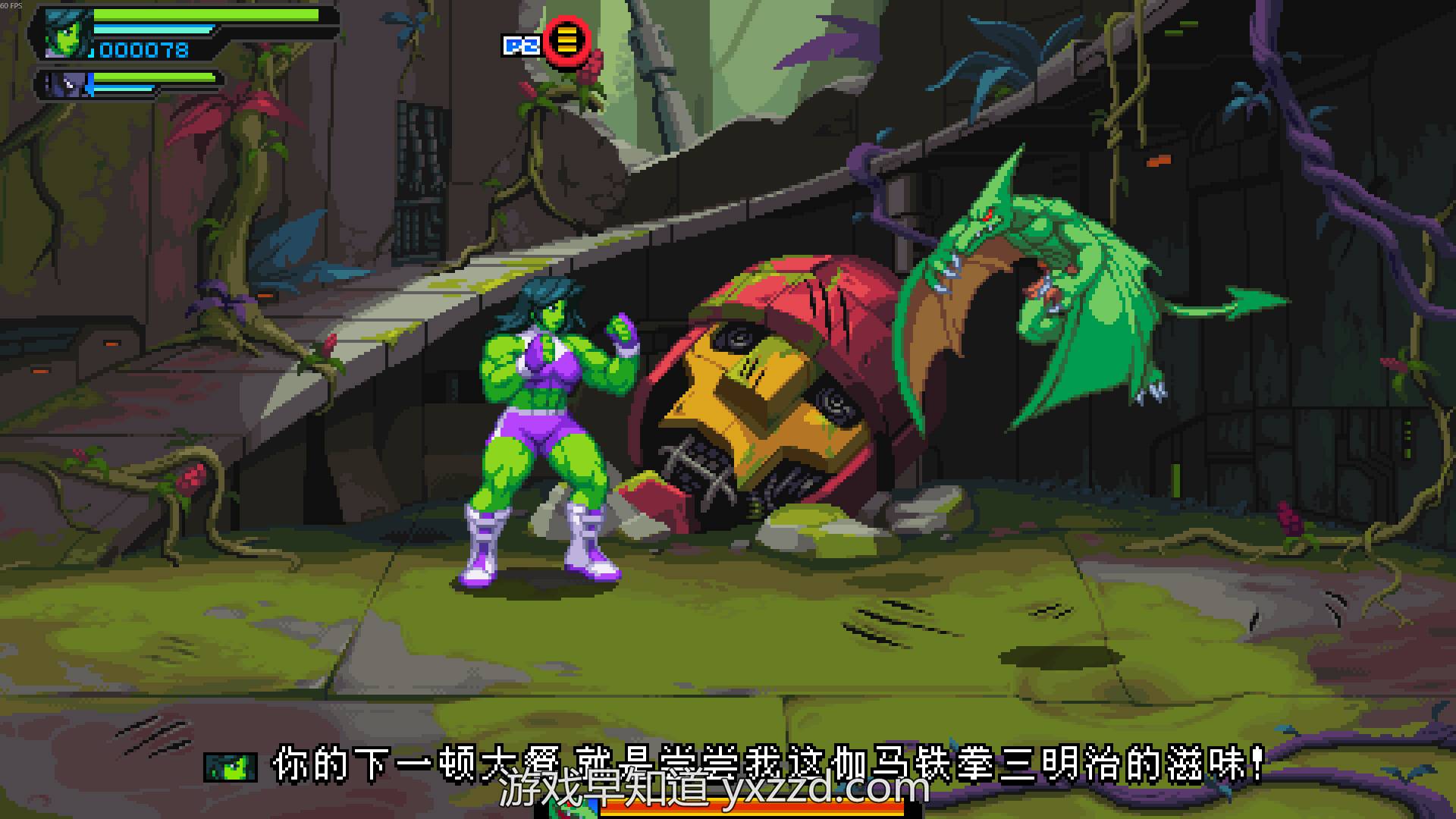 这里我们需要指出的是《漫威宇宙入侵》在玩法和系统上仍然是很简单直白的,它的玩法就是复刻FC时代的横版清版动作游戏。游戏每一关的内容同质化程度相当高、缺乏变化而且流程很短,玩法也仅限于动作打斗和BOSS战。大家如果是多人一起游玩,半天时间就能打通游戏。显然游戏的耐玩性和内容丰富度是比较薄弱。当我们把游戏的漫威情结拿掉,深度审视游戏本身我们就会发现本作是一款内容相对贫瘠的横版清版动作独立游戏。本作的剧情文本量也很低,如果大家希望看到原创的漫威宇宙全新剧情,那么大家会感到失望。和此前的《忍者神龟:施莱德的复仇》相比,《漫威宇宙入侵》的素质没有质的提升,依旧是一道缺乏回味快餐小品。