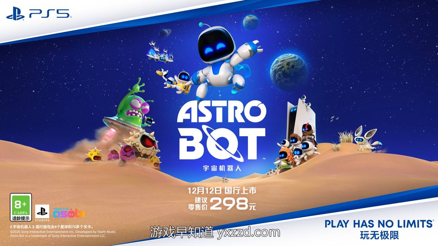 2025年12月1日—索尼互动娱乐(上海)有限公司(以下简称“索尼互动娱乐”)今日正式宣布,PlayStation双十二活动于今日正式开始,PlayStation®5与PlayStation®5 Pro游戏主机以及周边产品参与限时优惠。《宇宙机器人》国行版游戏将于12月12日在中国大陆市场正式发售,包括PlayStation®5数字版及PlayStation®5实体标准版光盘,建议零售价人民币298元,预售活动于12月1日开启。