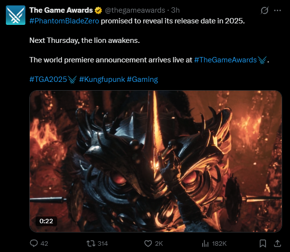 TGA(The Game Awards)官方推特正式官宣,国产3A武侠动作游戏《影之刃零》确认参展2025 TGA。