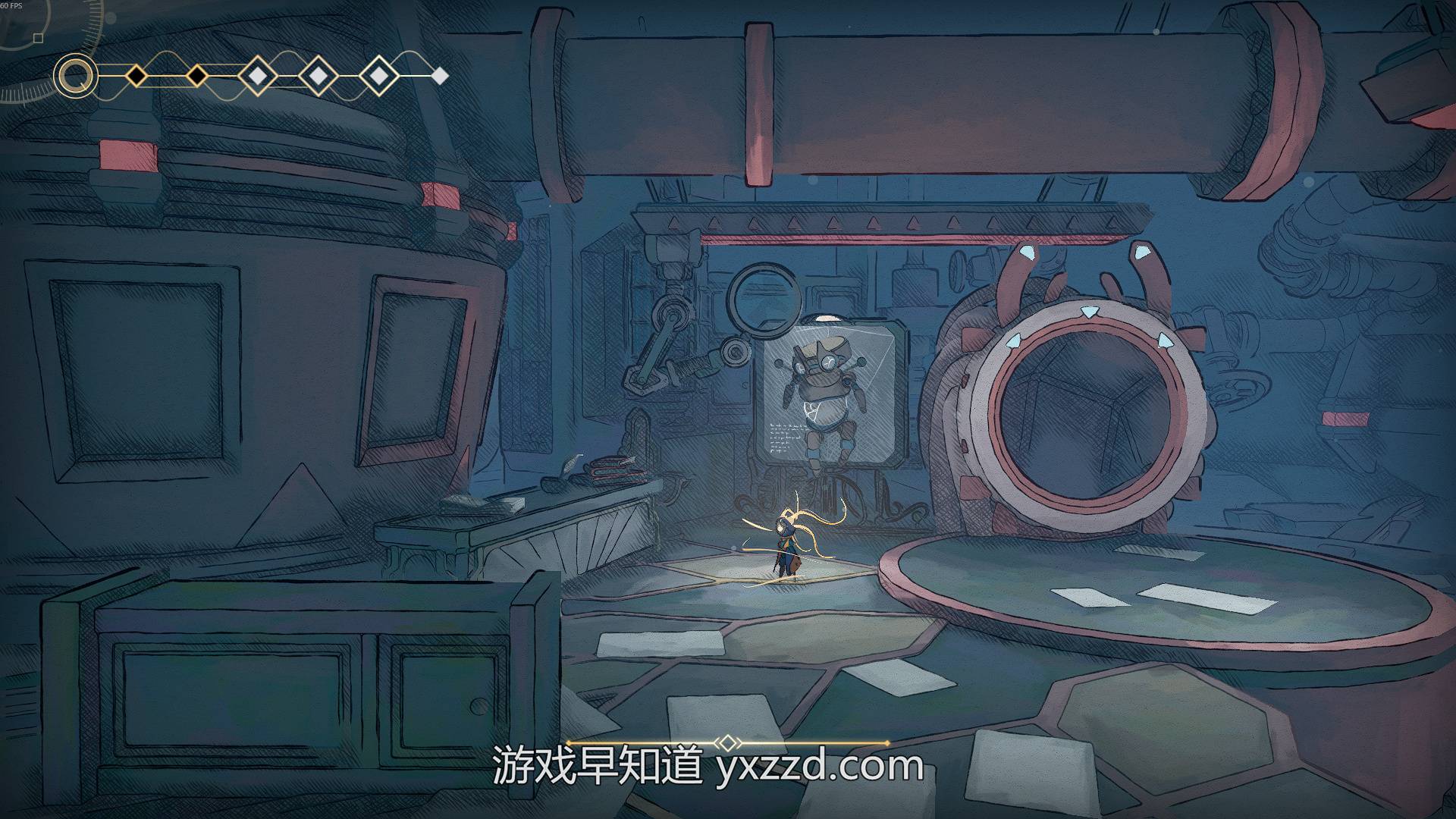 《秘奥:秘宇奥忆》的背景是科幻题材,我们所操控的主角是一台失去记忆的智能小机器人“秘奥”,游戏的场景是一艘名为“皿躯舰”的迷失的巨型太空飞船,“秘奥”需要探索“皿躯舰”的各个角落,并最终解开“皿躯舰”迷失的真相和“秘奥”的身世。作为一款动作独立游戏,《秘奥:秘宇奥忆》并不是以剧情文本为卖点,游戏的文本量并不大,许多信息都散落在地图中的各个角落,大家想要深入了解游戏的世界观就需要地毯式的进行地图探索与搜寻。不过游戏的文字谜语感很强,读上去和理解都比较晦涩。但令人惊喜的是本作支持官方中文配音。