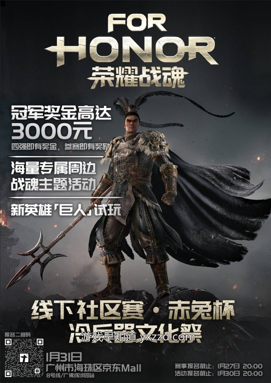 “打荣人”集合!由育碧携手游民星空举办的“《荣耀战魂》线下社区赛·赤兔杯&冷兵器文化祭”活动将于1月31日在广州海珠区京东Mall正式开幕!竞技赛事、主题活动精彩不停,更有现金奖品、主题周边等你赢!
