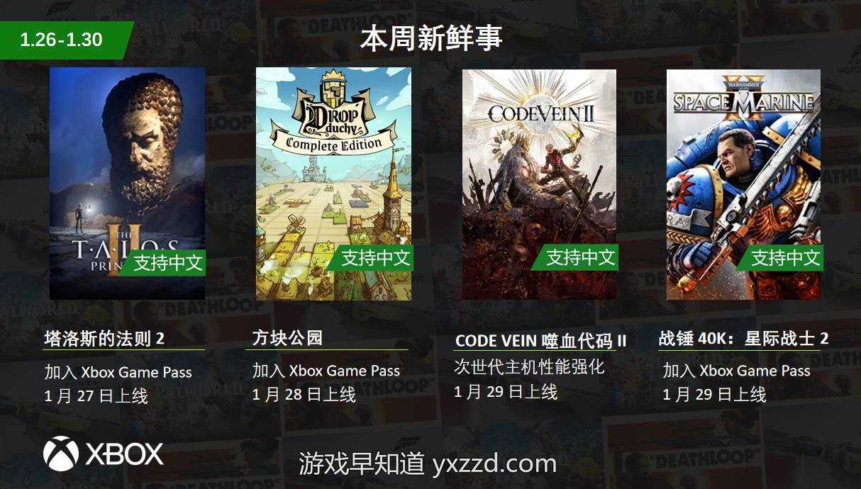 未经允许不得转载:游戏早知道 » 26年1月26-30日Xbox新作发售列表及XGP动态 《战锤 40K:星际战士2》《纪元:变异》加入Game Pass