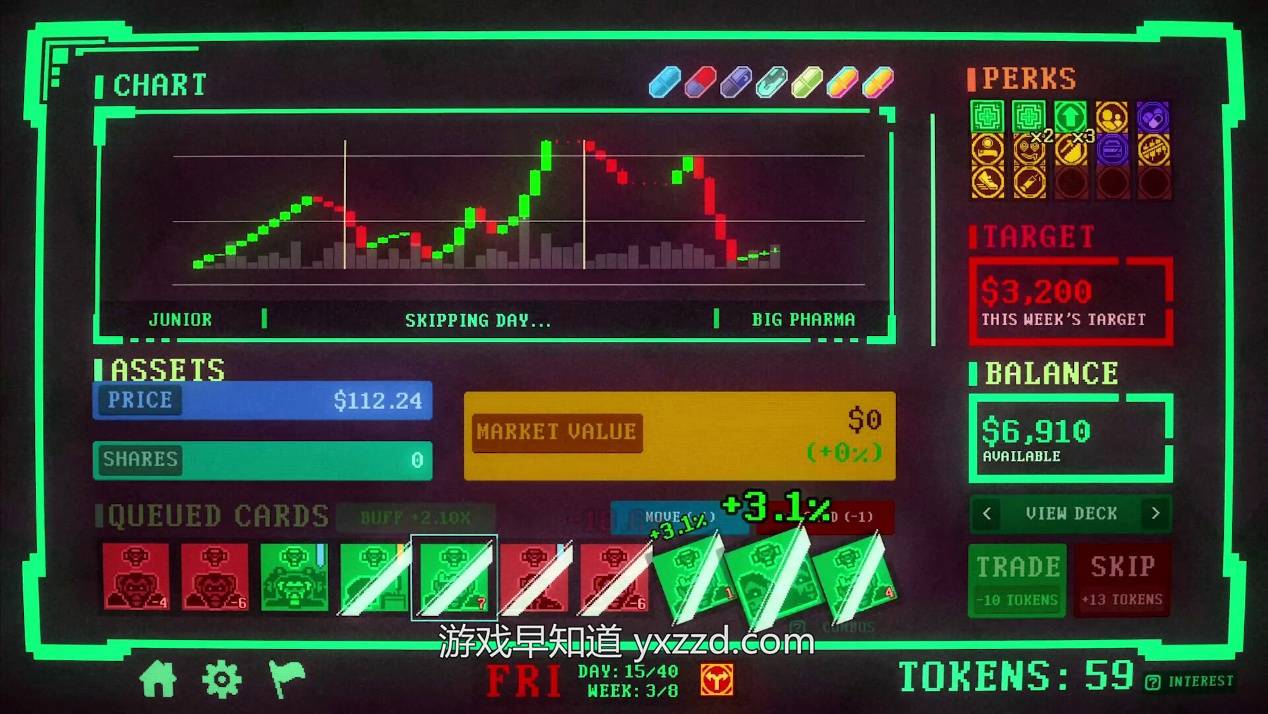 一款牌组构筑游戏,在这里,势头、贪婪,以及市场本身,都是你最大的威胁