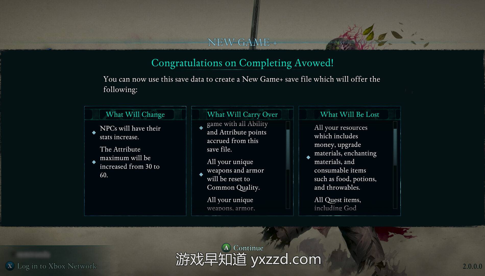 当你准备好再次踏入盎然之地时,现在可以通过新增的"新游戏+"模式开启旅程。在周年更新上线后完成游戏,你将有机会创建新游戏+存档。该功能允许玩家保留所有已解锁的能力(除神祇类能力外)、独特武器与护甲以及已解锁的附魔效果。玩家的其他进度将重置为全新游戏状态,但这并不意味着危险会减少。敌人的属性数值会提升,使其更具挑战性;作为平衡,玩家的属性点上限——例如力量、体质、敏捷等——将从 15 点提高至 30 点,让你能对更强大的敌人造成重创。