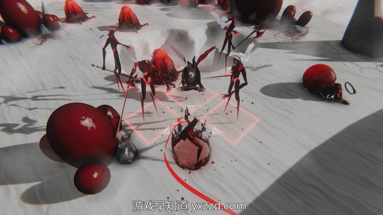《血色序曲》描绘了一个对立鲜明的世界——象征生命律动的猩红之血,与逐渐侵蚀世界的苍白永恒形成对峙。在程序生成的关卡中,玩家拥有高度自由度,能够以策略与鲜血在战场上“书写”属于自己的战斗轨迹。