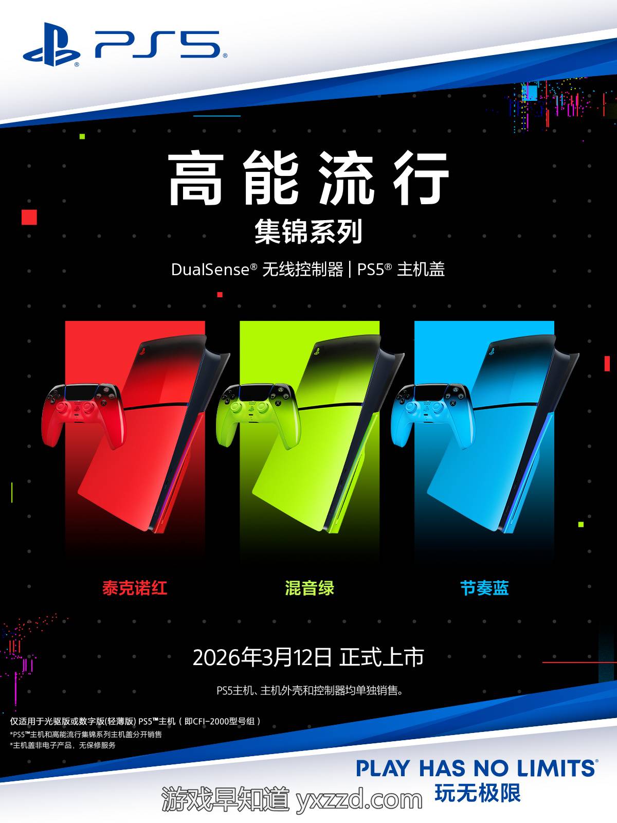 2026年2月27日—索尼互动娱乐(上海)有限公司(以下简称“索尼互动娱乐”)今日正式宣布,PlayStation多款全新配件将于2026年3月陆续在中国大陆上市,更好的满足玩家多样化游玩需求。配件产品包含:DualSense®无线控制器 -《失落星船:马拉松》限定版,3月6日正式上市,建议零售价人民币639元,即日开启预售;高能流行集锦系列DualSense®无线控制器及 PS5™(轻薄版)主机盖将于3月12日上市,建议零售价分别为人民币639元及人民币559元;DualSense®无线控制器 -《死亡搁浅2:冥滩之上》限定版,将于3月12日开启预售,3月19日正式上市,建议零售价人民币639元。