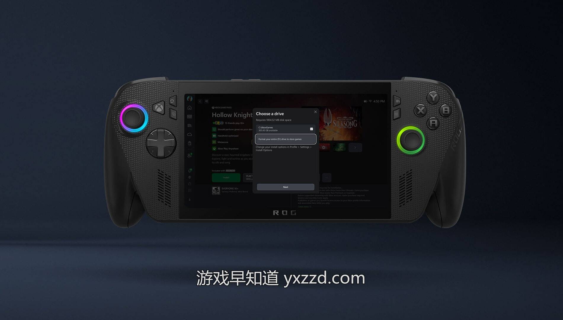增强可移动存储设备格式化支持:ROG Xbox Ally 玩家现在可以轻松格式化可移动存储设备(包括官方授权的闪迪 microSD 卡),以便在 Xbox 应用中直接安装并运行游戏。安装游戏时,您只需选择可移动存储驱动器即可直接进行格式化。
