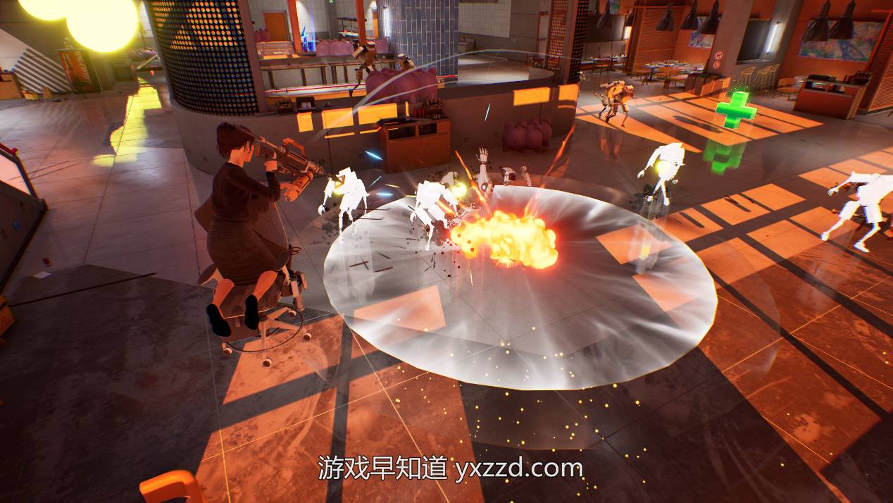 在这款节奏爆炸的动作射击游戏中,骑着办公椅狠狠干翻一切“职场危机”!