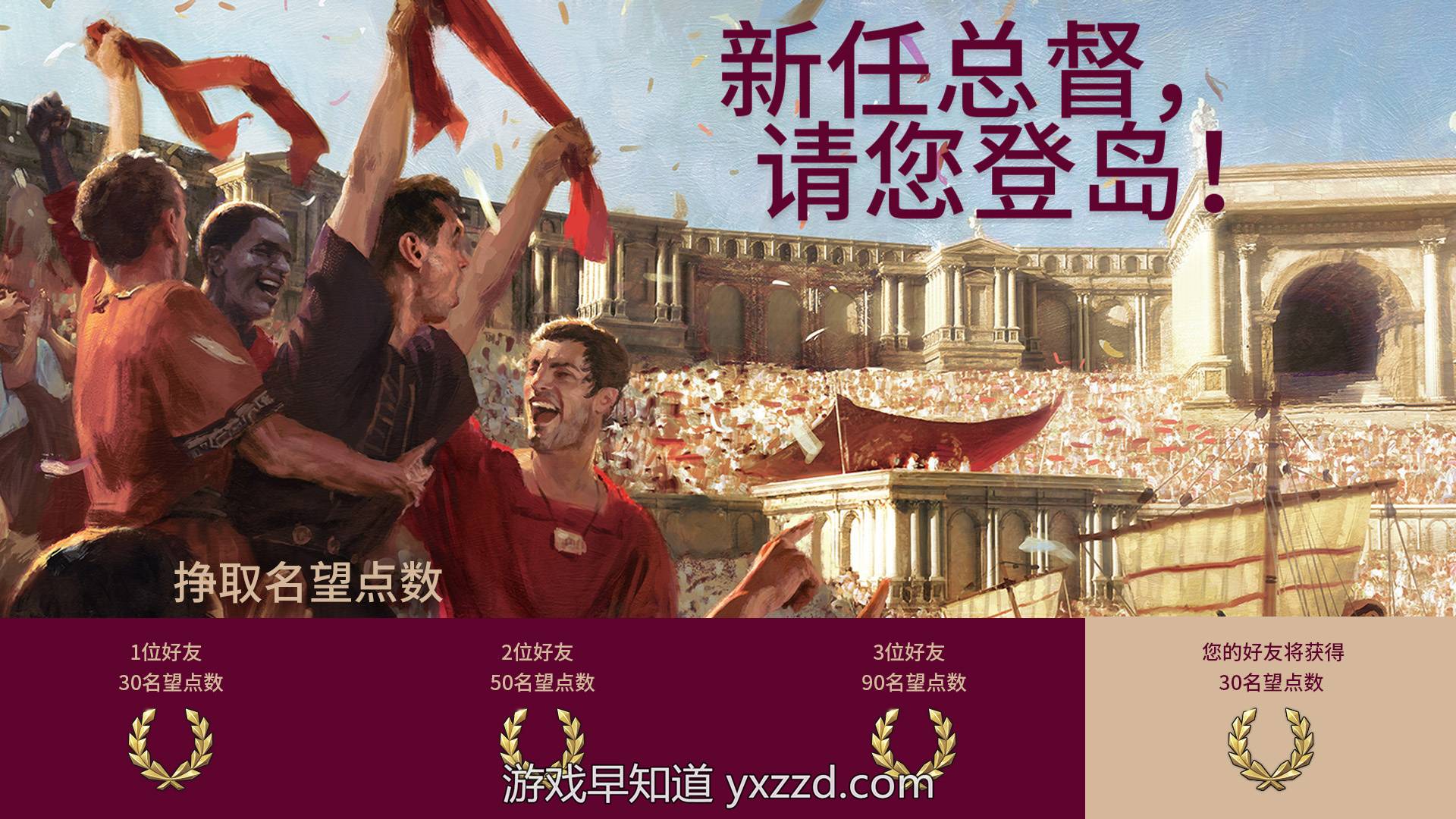 《纪元117:罗马和平》好友邀请活动现已正式启动,截止至5月12日,前往活动页面:https://ubi.li/YzxYP,成功邀请好友入坑《纪元117:罗马和平》,即可获得名望点数: