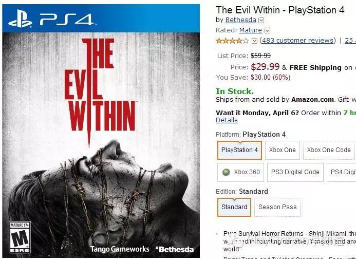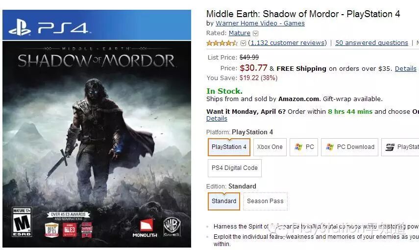 目前正值欧美传统的复活节假期,《中土世界:暗影魔多》和《恶灵附身》2款游戏正在美国Amazon限时促销,分别是6折和5折,折扣的力度不错。