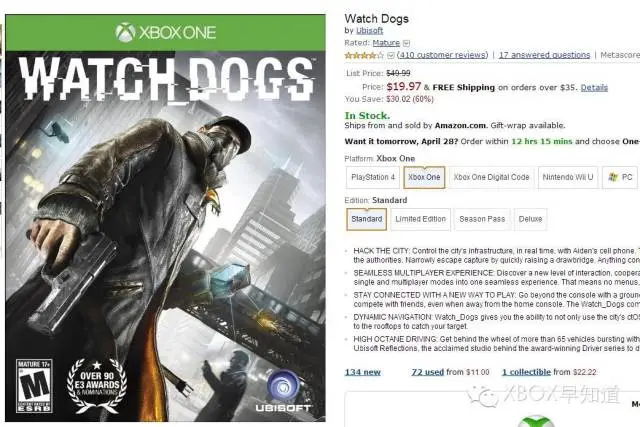 2Amazon上《看门狗》《罗马之子》普通版均为19.99美元