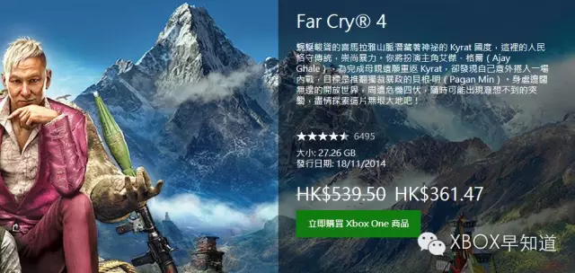 1Xboxone金会员折扣《孤岛惊魂4》普通版和黄金版都是66折